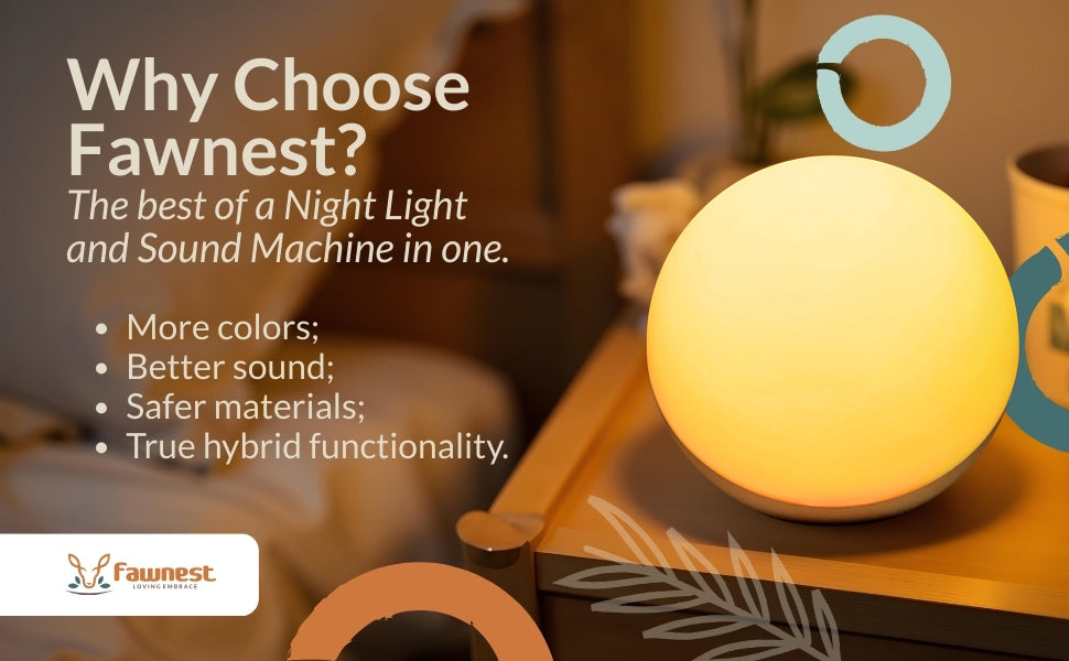 The FAWNEST Egg Night Light with White Noise Machine is the all-in-one nursery essential every parent needs. Designed for peaceful nights and better sleep, it combines a gentle night light, soothing sound machine, and Bluetooth speaker—all in a sleek, portable design.