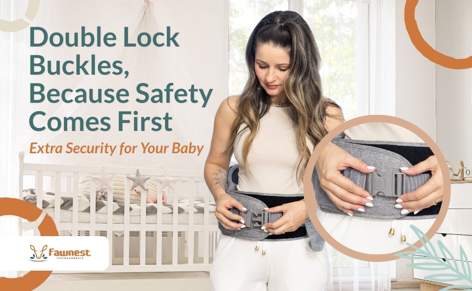 The hip seat really helps take the weight off my shoulders and back. I feel totally secure with the wide Velcro and double locks. Plus, the storage pockets are super handy for wipes and my phone when I’m out and about with my baby.